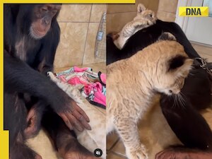 New Delhi: If you enjoy viewing animal videos, your social media feeds are probably full of photographs, videos, and interesting facts about animals. Such stuff is frequently intriguing to watch, and many films may even touch your heart. Like this video of a chimp meeting lion cubs for the first time. The adorable video is shared on Instagram by a user named Landon Scherr and we are sure it will simply make your Wednesday a lot brighter.
