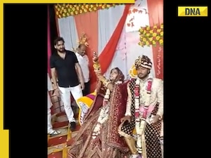 A relative of the bride recorded the video of the incident, which took place on Friday night at a guest house in Hathras district and uploaded it on social media.