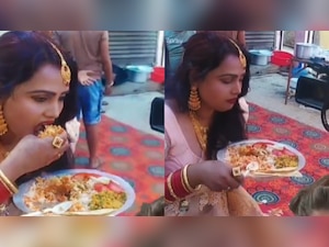 In the video, later when the camera zoomed in on her, the woman just smiled at it and continued to eat her food. The viral video has left netizens in splits.