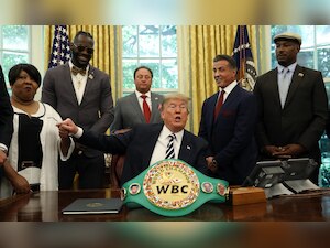 Actor Sylvester Stallone, famous as the star of the "Rocky" boxing-movie franchise, and boxer Lennox Lewis flanked Trump for the pardon in the Oval Office. In April, Trump tweeted that he was considering the pardon after talking to Stallone.