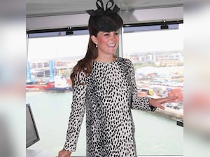 The Duchess, who is eight months pregnant, also boarded the ship for a brief tour.